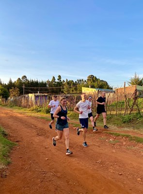 Het resort van meervoudig Nederlands Kampioen Koenb Raymaekers (2.10 op de marathon) was de uitvalsbasis van tal van harddlloop- en andere avonturen in het bekende rift valley gebied in Iten. Het mekka van de hardloopwereld, waar menig wereldtopper zijn oorsprong kent. In deze ambiance verzorgde oud Nederlandskampioen Aart Stigter dagelijks de trasiningen. ‘smorgen vroeg om 07.30 ondergingen de lopers tal van losmakende- en spierversterkende ofening o.l.v. Aart en zijn Zoon Bas Stigter. Soms werd deze oefensessie vervangen door een fartlektraining in de schitterende natuur van Kenia of een training op de grevelbaan in de regio, waarbij tegelijk getraind kon worden met tal van Afrikaanse atleten. Keken de Nederlanders hun ogen uit bij het aanschouwen van het Keniaanse hardloopgeweld, de lokale bevolking zag de Nederlanders op hun beurt als bezienswaardigheid. Met een warm welkom werden de blanken mzuguns ontvangen.